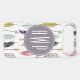 A gift featuring a pattern of illustrations of feathers with a chevron background. Personalise with your monogram over purple circle.
