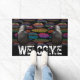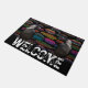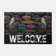Colourful Feathers And Two Ravens Door Mat Rug. Picture of two ravens perched on welcome. Home decor. Perfect for those who love Ravens, Crows and Black birds. You can customise colour, size and style. With or without the bright feather background. Great gift idea.