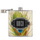 The flask itself is fine. It’s a cheap flask, obviously bought in bulk, however am prepared to overlook that. Given that it is a personalized item, I would have liked to have seen gift boxing instead of the generic packaging. Terrible printing, and/or quality. It’s a cheap, tacky vinyl. It is not cut straight and is also applied in a way that it is overhanging the bottom, causing the glue to catch on items and it will eventually roll and tear, damaging the wrap.