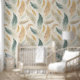 This peel and stick wallpaper featuring a block print pattern of colourful feathers on a beige background appears scattered randomly across the wallpaper. This type of peel and stick wallpaper is a perfect way to add a touch of the outdoors to your home. It's easy to apply and remove. This wallpaper would look great in a bedroom, bathroom, living room, or even a kitchen. The beige background and colourful feathers make it a versatile choice that will complement a variety of décor styles.