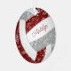 This cute volleyball themed ornament features the realistic image of a volleyball that has maroon, grey and white panels and a delicate doodle pattern of paislies, flowers and feathers in white overlying the maroon & grey panels - personalise with her name on the front, year on the back - by katz_d_zynes