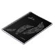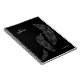 Feathers Fall Art Illustration Outline in Light Grey on Black on a personalised notebook.