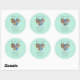 Personalised wedding thank you sticker. Customise with the bride and groom's name and their wedding date. Cute romantic watercolor design of feathers in a heart shape. Colours include yellow, orange, blue, green and brown. Some have stripes, dots, tribal patterns and other unique creative decorative arrangements. Set on a mint green background.
