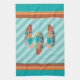 Feathers in Teal Stripes and Desert Colour Tea Towel