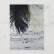 An old fashioned still life of a black feather and a white feather on a sheet of music.