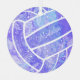 This pretty volleyball themed ornament has a purple colour theme with light blue & lilac accents and features the outline image of a simple volleyball - a delicate doodle pattern of paislies, flowers and feathers in white covers all but one of the volleyball's textured-look panels - personalise with her name on the front, year on the back - by katz_d_zynes