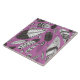 Black and white feathers on violet, pattern drawn in Illustrator.