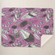 Black and white feathers on violet, pattern drawn in Illustrator.