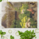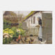 This design features a painting by the Danish artist Hans Andersen Brendekilde (1857–1942). It shows an elderly lady feeding her chickens in the garden of her farmhouse. She lives in a traditional cottage with white walls and a thatched roof. There are many flowers growing in the garden. There is one male cockerel and many hens in the garden. There is also a small cat resting by the wooden fence. The original artwork was painted by H.A. Brendekilde in 1906.
