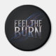 A powerful and visually striking graphic design featuring the phrase "Feel The Burn" in bold, elegant colours. The text is rendered in a sleek, modern font, with contrasting shades of deep blues, purples, and silvers. The overall composition is dynamic and eye-catching, with the text positioned prominently against a dark background. The design evokes a sense of intensity and excitement, reminiscent of the fiery energy of a burning flame.