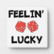 " FEELIN' LUCKY " RED DICE WITH BLACK TEXT LETTERING