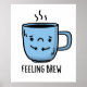 Feeling Brew Funny Sad Coffee Pun features a cute coffee mug feeling sad and blue. Perfect pun gift for family and friends who love cute coffee puns.