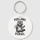 Feeling Feral Raccoon Drink Coffee Funny Trash Pan Key Ring