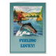 Fishing on the river, catching a salmon, vintage image.