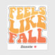 This bold and vibrant fall-themed artwork features the phrase "Feels Like Fall" prominently displayed in a retro-inspired, chunky font. The text is arranged in a dynamic, playful layout that draws the eye and adds a sense of movement to the design. The warm gradient colour palette transitions from golden yellow to deep orange, perfectly capturing the rich hues of autumn leaves. The simplicity of the design, paired with its nostalgic typography and striking colours, makes it a perfect choice for seasonal decor, apparel, or promotional materials celebrating the arrival of fall. This artwork is ideal for evoking the cosy and nostalgic feelings associated with the autumn season.