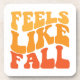 This bold and vibrant fall-themed artwork features the phrase "Feels Like Fall" prominently displayed in a retro-inspired, chunky font. The text is arranged in a dynamic, playful layout that draws the eye and adds a sense of movement to the design. The warm gradient colour palette transitions from golden yellow to deep orange, perfectly capturing the rich hues of autumn leaves. The simplicity of the design, paired with its nostalgic typography and striking colours, makes it a perfect choice for seasonal decor, apparel, or promotional materials celebrating the arrival of fall. This artwork is ideal for evoking the cosy and nostalgic feelings associated with the autumn season.