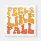 This bold and vibrant fall-themed artwork features the phrase "Feels Like Fall" prominently displayed in a retro-inspired, chunky font. The text is arranged in a dynamic, playful layout that draws the eye and adds a sense of movement to the design. The warm gradient colour palette transitions from golden yellow to deep orange, perfectly capturing the rich hues of autumn leaves. The simplicity of the design, paired with its nostalgic typography and striking colours, makes it a perfect choice for seasonal decor, apparel, or promotional materials celebrating the arrival of fall. This artwork is ideal for evoking the cosy and nostalgic feelings associated with the autumn season.