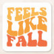 This bold and vibrant fall-themed artwork features the phrase "Feels Like Fall" prominently displayed in a retro-inspired, chunky font. The text is arranged in a dynamic, playful layout that draws the eye and adds a sense of movement to the design. The warm gradient colour palette transitions from golden yellow to deep orange, perfectly capturing the rich hues of autumn leaves. The simplicity of the design, paired with its nostalgic typography and striking colours, makes it a perfect choice for seasonal decor, apparel, or promotional materials celebrating the arrival of fall. This artwork is ideal for evoking the cosy and nostalgic feelings associated with the autumn season.