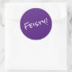Feisty! written in white, modern trendy font typeface on a purple sticker. This design is available in two sizes (large 3" with 6 to a sheet or small 1.5" with 20 per sheet). You can also choose glossy or matte finish. Although it is also available in many shapes, If you choose an option other than the one shown, make sure to preview it before ordering - just to make sure you like the results.
