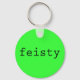 Having or showing exuberance and strong determination, that's feisty. Is that you or someone you know? Show it off with the word "feisty" written in black in a cool font on a neon green background.
