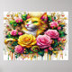 Feline Amidst a Vibrant Floral Bloom 16x12 Poster