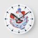 This clock is decorated with red, white, and blue trim and a portrait of the famous clown Felix Adler.
