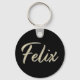 Ein sehr schöner edler personalisierter Button Schlüsselanhänger im whitegold Lettering Look auf schwarz für Felix.