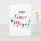 This fun and festive card has the message "Feliz Cinco de Mayo!" in green and red brush lettering on a white background. The inside of the card is blank for your personal message.