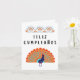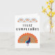 Spanish birthday card (tarjeta de cumpleaños) with birthday message in Spanish (Feliz Cumpleaños, happy birthday in Spanish) and traditional Mexican style illustration (Alebrije peacock). Includes birthday message inside card, 'Feliz Cumpleaños'.