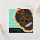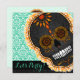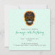 Feliz Muertos Tilted Orange Sugar Skull on Teal Invitation
