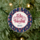 Feliz Navidad Folk Santa Reindeer Blue Custom Ceramic Ornament