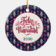 This fabulous Christmas folk art blue round ceramic ornament with a pattern of santas, reindeer, stars and presents that says Merry Christmas in Spanish "Feliz Navidad" and has the year would look awesome on your Christmas tree. It's so festive and will go with any Christmas decor - it's rustic yet retro and modern yet traditional! Get some as gifts for loved ones...they'll love it!