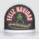 Celebrate Christmas with a Latin flair with this festive snow globe featuring curved neon "Feliz Navidad" text with neon sombrero and holly on a black background with falling snowdrops.