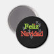 Red and green text with white snowflakes reads "Feliz Navidad" on holiday greeting cards, mugs, tote bags, buttons, T-shirts, and much more.