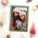 This modern holiday photo card features one vertical photo, a festive dark green background, and a papel picado inspired frame in raised gold foil. The greeting and your personalised text are in raised foil also. This design is festive and elegant! The background colour is fully customisable. The raised foil on this card really shines and adds that extra special touch to your holiday cards!
