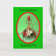 Tarjeta colour verde con circulo rojo e imagen de adorno/ decoracion navidad, verso Los Angeles anuncian el glorioso nacimiento del Niño Dios, Feliz Navidad querida tia