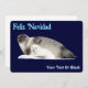 A mother Ringed Seal and pup on an ice floe. "Feliz Navidad" appears in glowing blue and white. Add your own additional text.