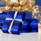 A swarm of blue fractal snowflakes. Text reading "Feliz Navidad" appears in glowing blue and white.