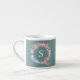 Coquito mug with a christmas wreath and puerto rican flag ribbon and monogram.