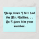 For the lovers of Jane Austen's unforgettable novel "Pride and Prejudice" a fun joke about Lizzie Bennet’s poor rejected suitor, Mr. Collins. Well, if he didn’t end up with Charlotte, he may have ended up with you! This design features the quote “Deep down I felt bad for Mr. Collins. . .So I gave him your number" on a lovely blue background. Perfect fun for your fellow Austen fans!