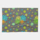 Hand drawn gray, yellow, green, orange, blue colored floral pattern.