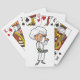 This design is a female chef with a fryng pan. The chef is in a chef uniform and is holding a fryng pan. This female chef with a frying pan design looks great on this Playing Cards