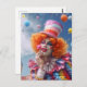 Female clown with flowers. lucrative postcard