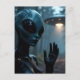 Keeping in touch with someone far away. Does it feel like you live in a different galaxy sometimes? Delight the sci-fi enthusiast in your life with a hyper realistic female alien and UFO keeping in touch postcard! This captivating design brings an otherworldly charm to any celebration, sure to spark imagination and wonder. Perfect for UFOlogy enthusiasts and those who love the mysteries of the universe, this postcard is a conversation starter. Order today to transport someone special to a galaxy far, far away!