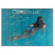 Black-haired female model swimming in a beautiful, blue sea to customise, personalise by changing to your name