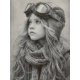 Female Girl Pilot Pencil Sketch Aviation themed Birthday Postcard Design is Copyright of Soar In Style Designs LLC.