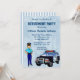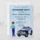 Retirement invitation for a retiring lady police officer. Design has a police car and a police officer with the words you are invited to a retirement party. Easy to customise with your party details.