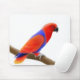 Airbrush painting of a red Eclectus parrot, a female. The male of the species is green with a yellow and red beak.
