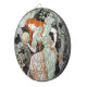 This design features artwork by the Swiss artist Eugène Grasset (1845–1917). It contains a striking image of an elegant red-haired woman: she represents the importance of knowledge, learning and science. The young woman is holding a large compass, a mathematical tool, in one hand and an orb, which represents power and influence over the world, in her other hand. The woman is wearing a beautiful green dress and strong red boots. She is confident and wise, which makes her a perfect figurehead and role model for women in science and technology. The artwork is in a classic art-nouveau style.