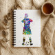 Watercolor-style artwork of a female soccer player in bright blue, yellow, and red tones. The bold sports design adds motivation and artistic flair to journaling, sketching, or note-taking.